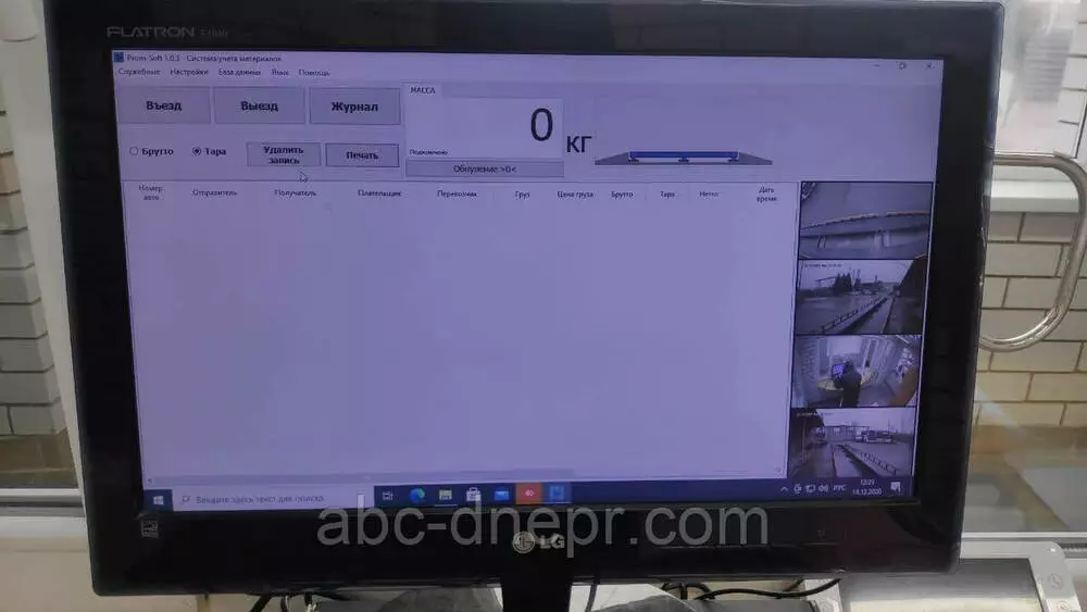 постановка автомобиля на весах, состояние загрузки кузова автомобиля, фотография монитора весовщика