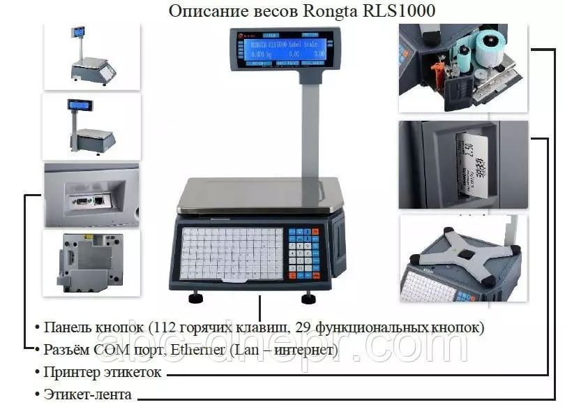 Весы с печатью этикетки, RS-232, Ethernet, встроенное ПО, 10000 PLUВесы с печатью этикетки RLS1000 (Rongta)